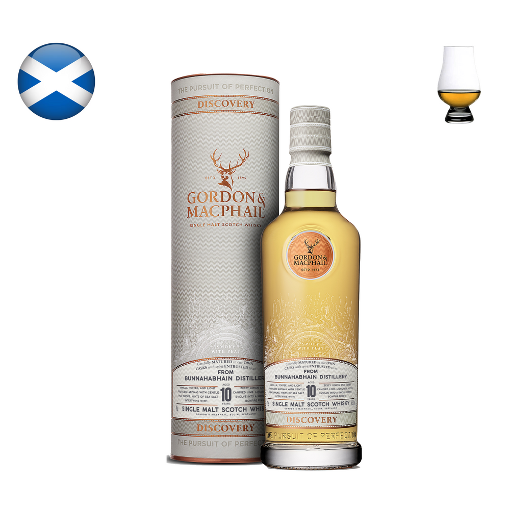 Bunnahabhain 10 Year Old is part of G&M Discovery range, designed to showcase classic flavour profiles. Bottled in 2023 at 43% ABV, this Islay single malt was matured in ex-bourbon casks for ten years and selected for its smoky character, which is atypical for Bunnahabhain. The whisky is non-chill filtered and bottled without added colour. The Discovery series categorizes whiskies by style, and this edition falls under the “smoky” profile, highlighting coastal and peated influences from the distillery.