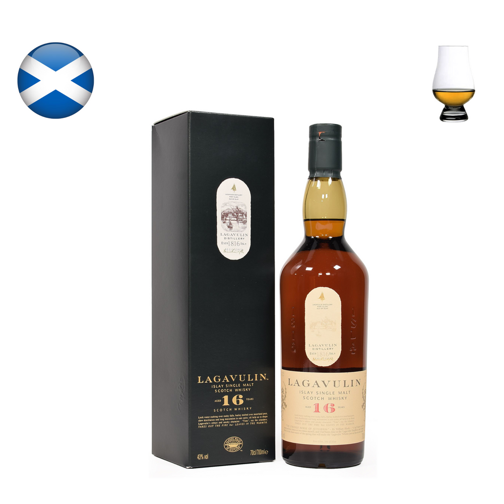 Lagavulin 16 year old matured in refilled American oak ex-bourbon casks. It embodies the essence of Islay single malts with its distinct peaty and maritime character.